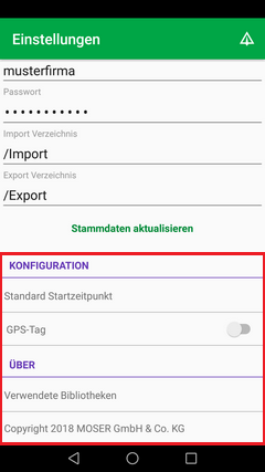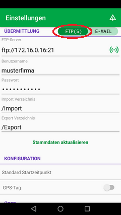 Export VerzeichnisLegen Sie hier das von der App für den Export von Daten verwendete Verzeichnis auf dem FTP-Server fest (z.B.