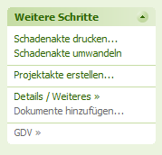Zu einer gespeicherten Schadenakte können weitere Schritte vorgenommen werden.