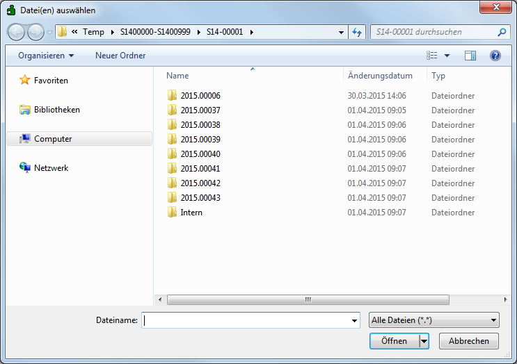 einen Dateiauswahldialog, das Verzeichnis der