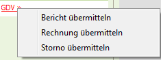 Durch die Auswahl dieser Aktion wird ein Nachschlagedialog zur Auswahl eines Rechnungsvorgangs angezeigt. Die ausgewählte Rechnung wird GDV-konform an die Versicherung übertragen.