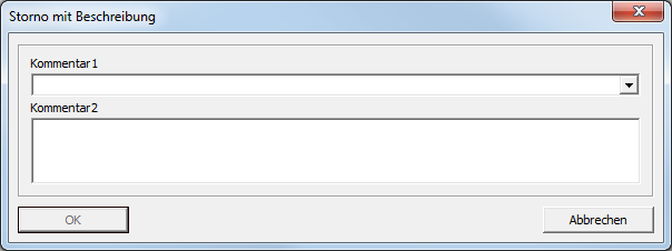 Durch die Auswahl dieser Aktion wird ein Dialog zur Eingabe von Kommentaren zum Storno angezeigt.