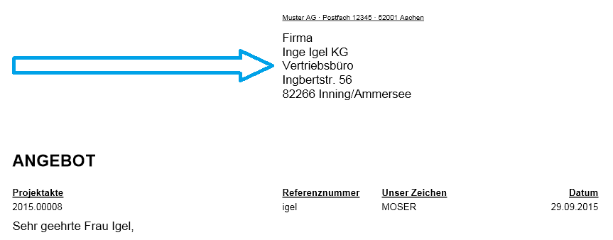 der Adressblock beim Druck am rechten Blattrand ausgegeben wird.