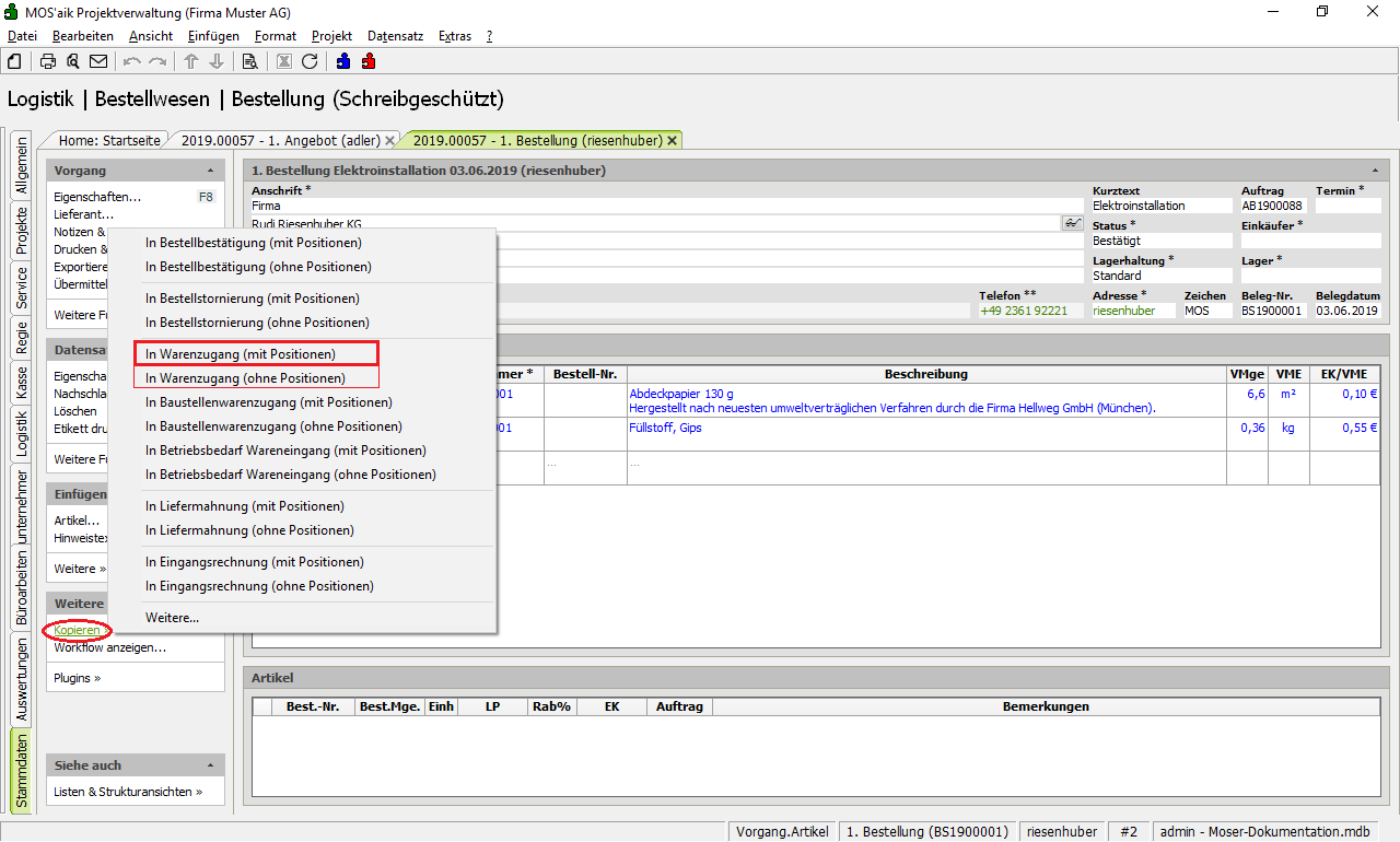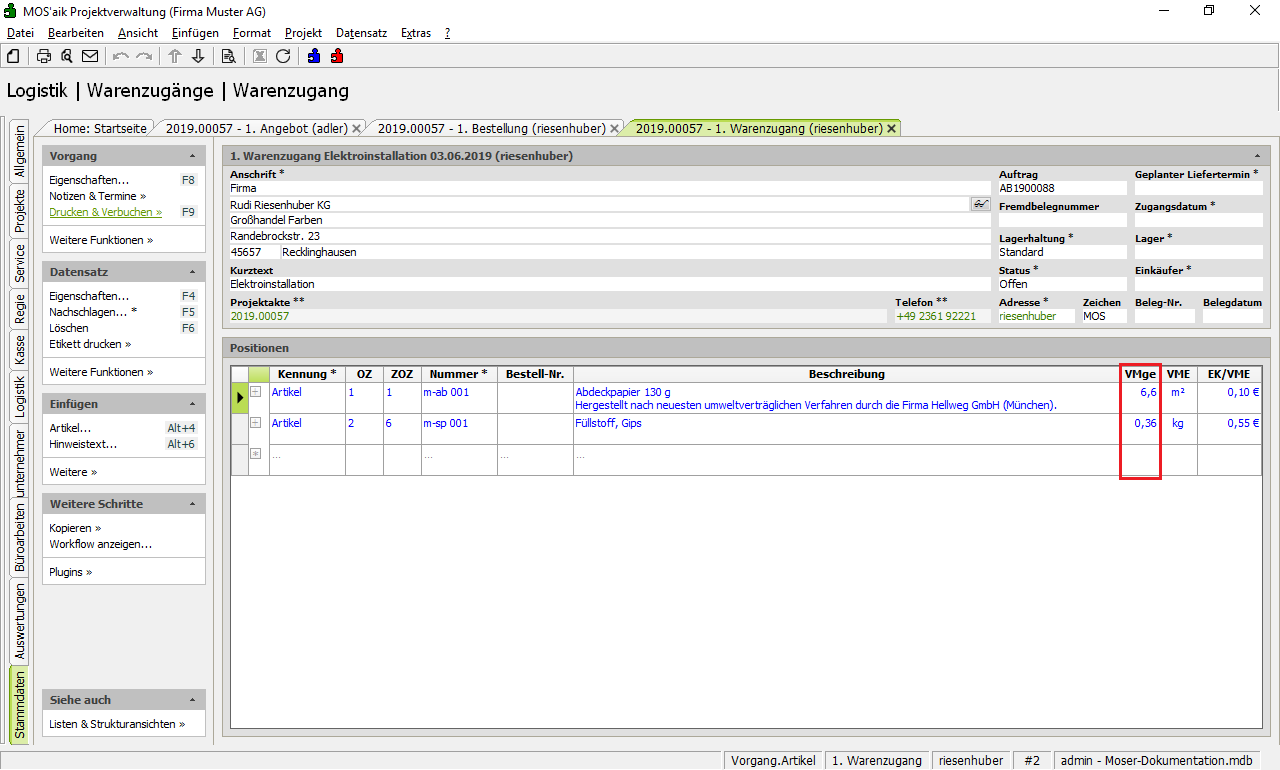 Weitere Informationen zu Warenzugang bzw. Baustellenwarenzugang finden Sie unter Logistik - Warenzugang bzw. Logistik - Baustellenwarenzugang.