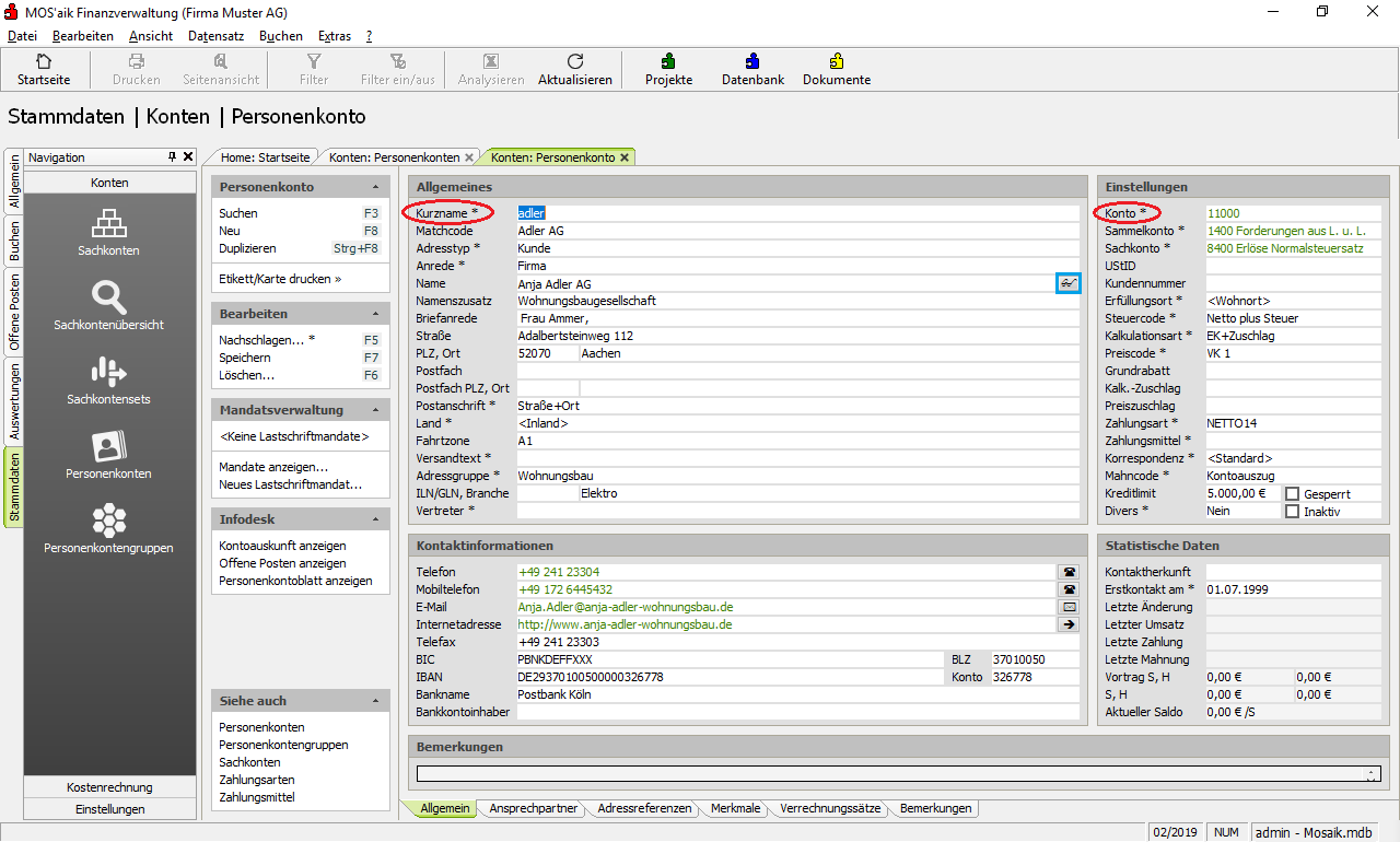 Personenkonten anwählen und über die Funktion Bearbeiten