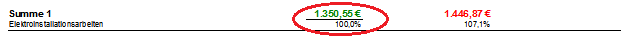 Im Ausdruck des Preisspiegels wird die fixierte Variante unterstrichen dargestellt: