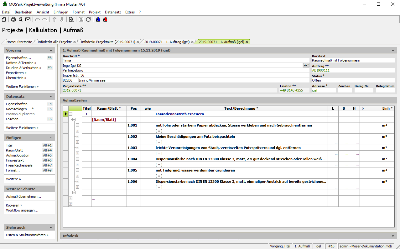 Ein neuer Vorgang vom Typ Aufmaß wird geöffnet: