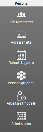 Der Bereich Stammdaten | Personal deckt alle Informationen zu ihren Mitarbeitern ab: So können Sie Mitarbeiter anlegen oder bearbeiten und sämtliche Daten zur Person, zum Arbeitsverhältnis, Arbeitszeiten sowie Kontakt-, Bank-, Lohndaten und viele weitere verwalten. Die Mitarbeiter können außerdem in Gruppen eingeteilt werden sowie besondere Arbeitsrollen zugeordnet bekommen. Die wichtigsten Funktionen des Personalbereichs werden in den nachfolgenden Abschnitten beschrieben.