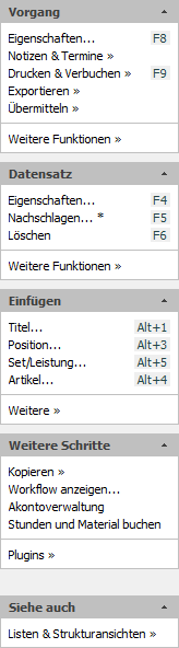 Artverwandte Funktionen oder Programmteile, deren Aufruf an dieser Stelle sinnvoll ist, finden Sie in der Funktions- bzw. Linkleiste im Bereich Siehe auch. |