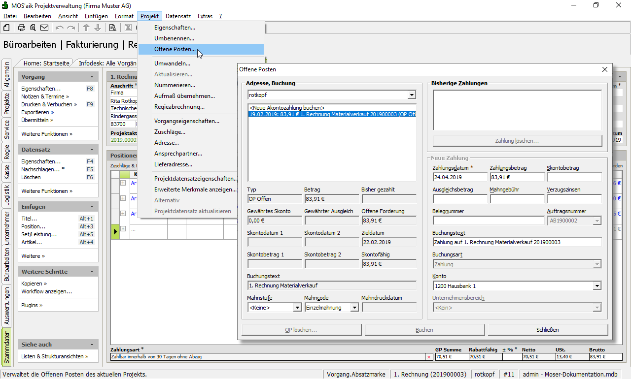 6.9.8. Zahlungen in der Projektverwaltung buchen
