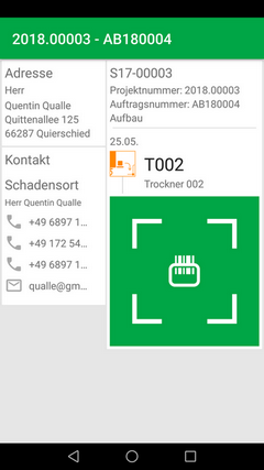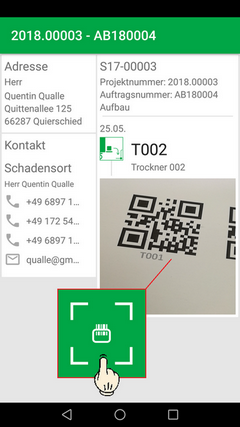 Geräte per Barcode erkennenGrundsätzlich können Geräte ganz einfach über den Barcode-Scanner erfasst werden. Tippen Sie dazu auf die grüne Fläche mit dem Scanner-Symbol, um die Scanner-Kamera einzublenden.