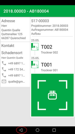 Geräteerfassung beendenNach Beendigung der Geräteerfassung verlassen Sie die Auftragsbearbeitung über die Zurück-Funktion des Mobilgerätes. Sie gelangen damit wieder in den Bereich "Arbeitsaufträge".