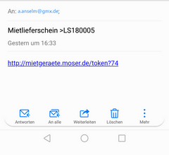 Import ArbeitsauftragDer Mitarbeiter empfängt die E-Mail auf seinem Mobilgerät, öffnet diese und tippt den darin enthaltenen Hyperlink an.