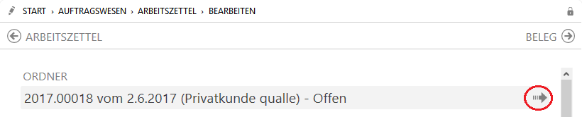 Aus der Ansicht der Vorgangseigenschaften gelangen Sie ganz einfach in das zugehörige Projekt, um dort Einstellungen vorzunehmen, einen anderen Projektvorgang zu öffnen oder weitere Vorgänge zum Projekt zu erstellen. Wählen Sie dazu den markierten Rechtspfeil: |