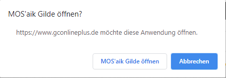 Mit dem Empfang der Warenkorbdaten fordert Sie der Browser auf MOS'aik zu öffnen: