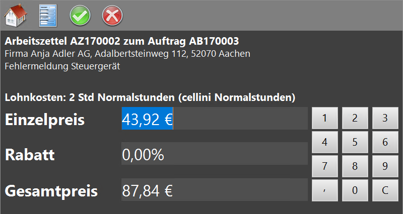 Im Eingabedialog des Arbeitszettels zum Erfassen der Stunden. Tippen Sie auf
