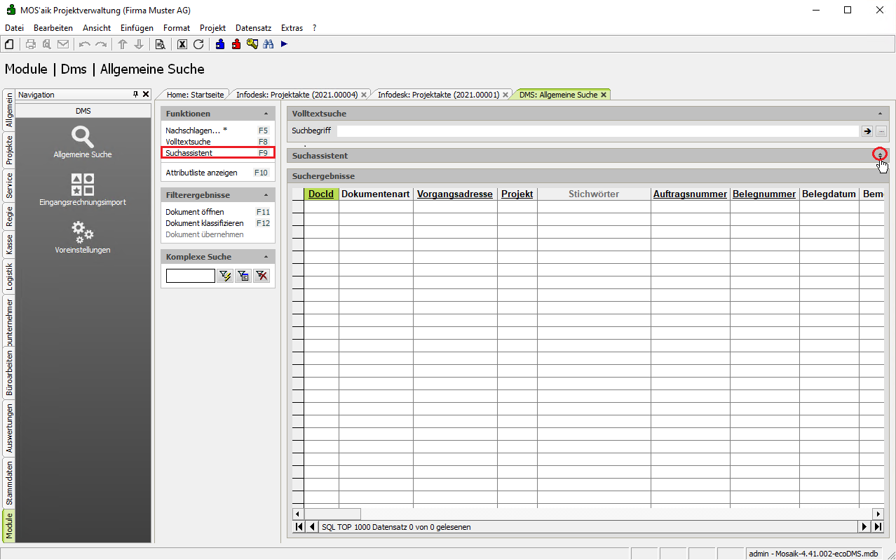 F9 von der Volltextsuche auf den Suchassistenten umgeschaltet werden. Über den