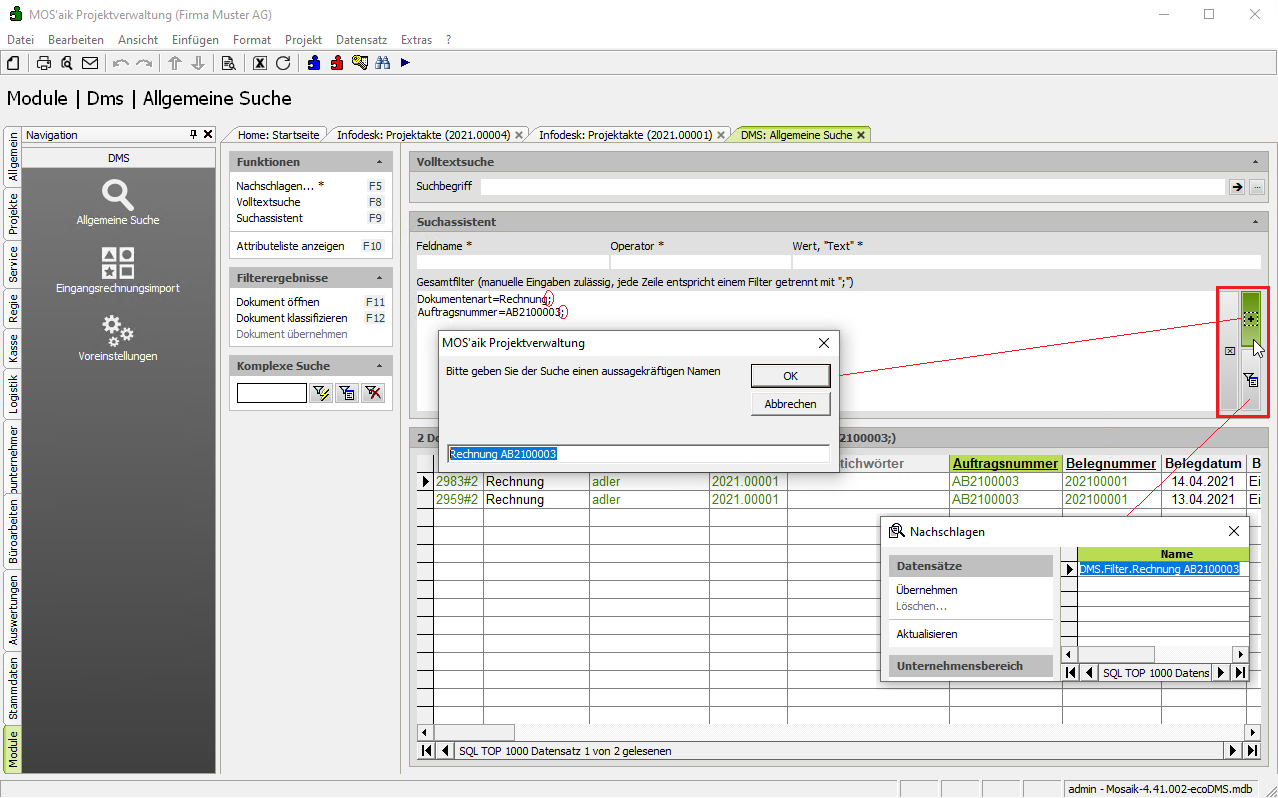 Verwendung des Suchassistenten im ecoDMS-Zusatzmodul.