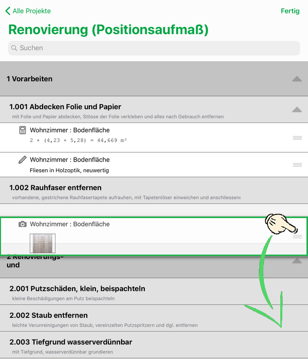 Beenden Sie die Aktion mit der Funktion Fertig am oberen, rechten Rand.