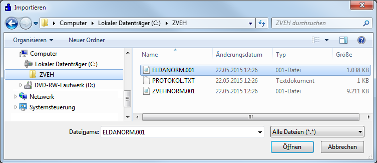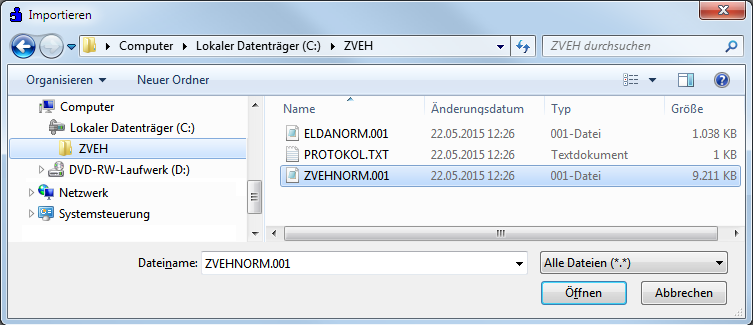 Abbildung 2.12. Import ZVEHNORM Format 2000
