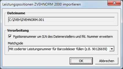 Abbildung 2.14. Leistungspositionen ZVEHNORM 2000 importieren