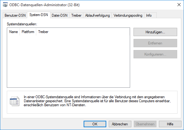 Wechseln Sie auf die Registerkarte System-DSN: