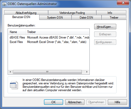 Wählen Sie die Registerkarte Benutzer-DSN.