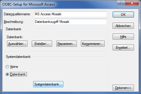 ODBC-Datenquelle(z.B. "MS Access Mosaik") aus und drücken Sie auf . -