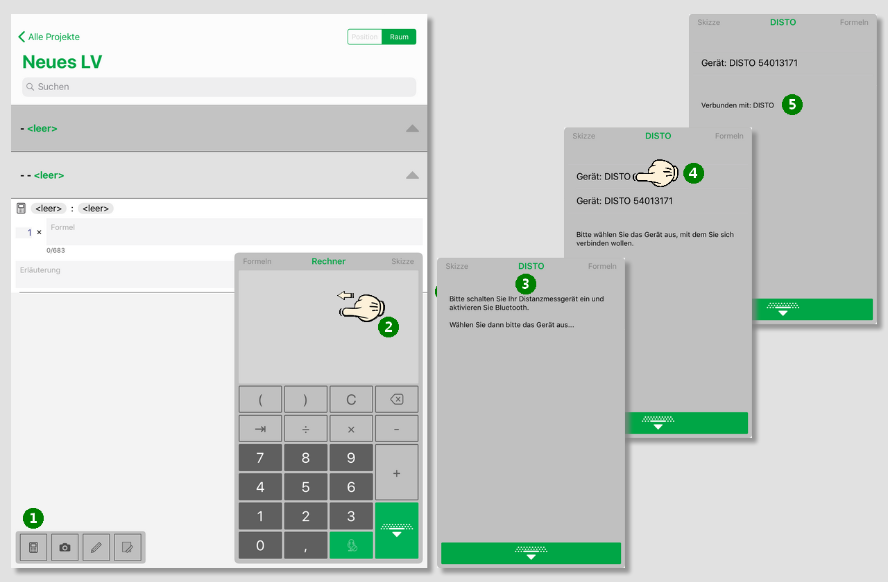 Führen Sie eine Messung mit dem Leica Disto durch: Der Messwert wird direkt in das Formelfeld eingefügt.