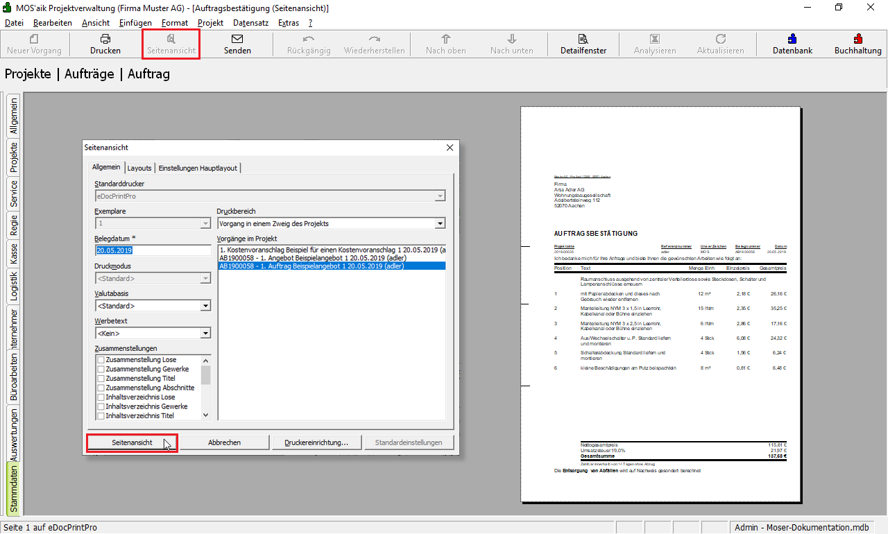 4.2.2. Auftragsbestätigung drucken