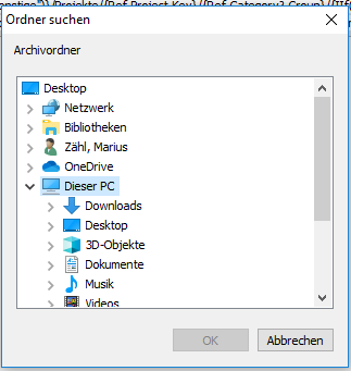 Über den Link Basisordner öffnen Sie einen Auswahldialog: