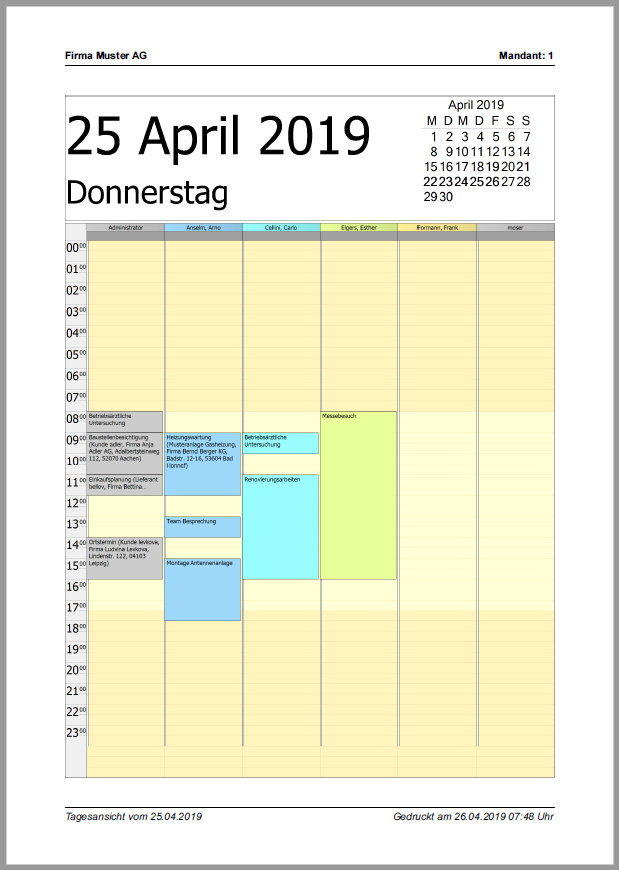 Erstellt im markierten Zeitbereich oder für einen markierten Tag einen neuen Termin und ordnet diesen dem Mitarbeiter zu.