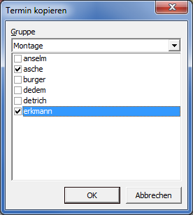 Gruppeoder "<Alle>" aus und haken Sie die gewünschten Mitarbeiter (oder alle mit Strg+A) an.Abbildung 12.12. Termin kopieren