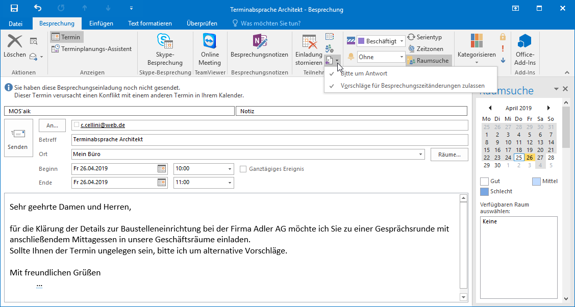 Abbildung 12.11. Besprechungsanfrage senden