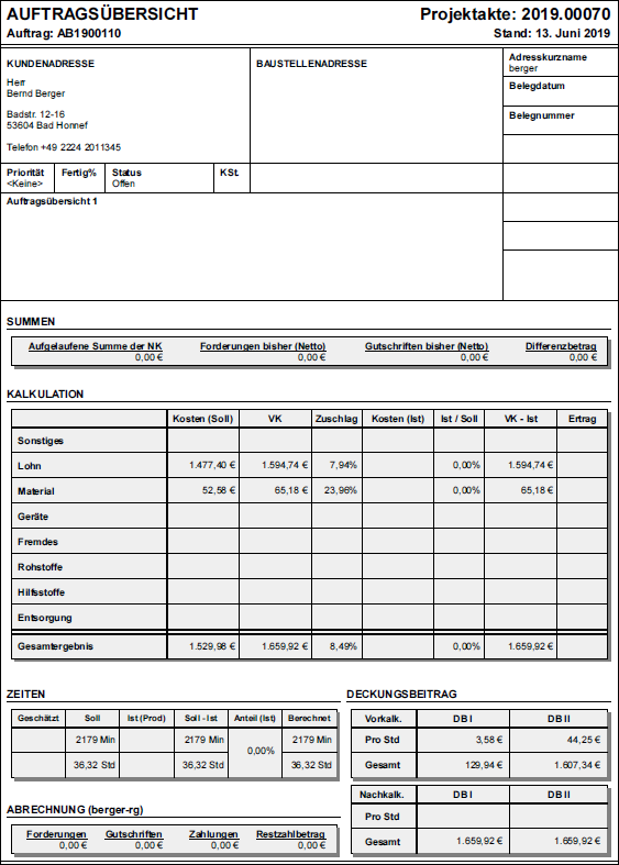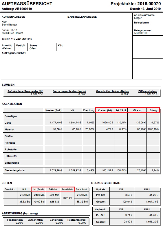 bzw. Nachkalkulationsdaten eine Auftrags zu erhalten, können Sie