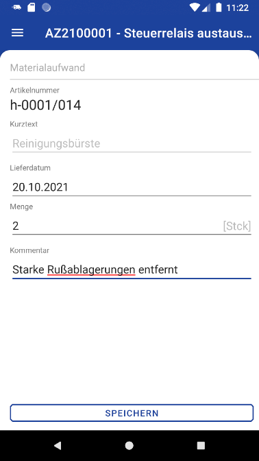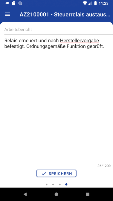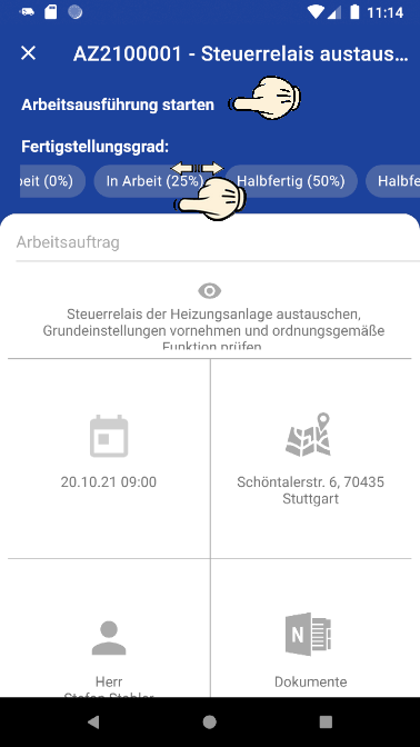 Mit der Auswahl eines Arbeitsauftrags (siehe "Arbeitsaufträge & Kalender") gelangen Sie in die Auftragsbearbeitung.