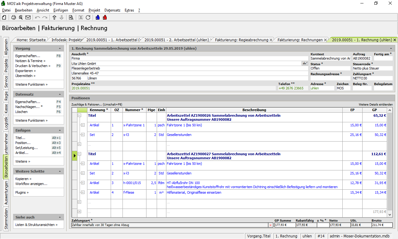 4.6.6.1. Sammelrechnung für Arbeitszettel