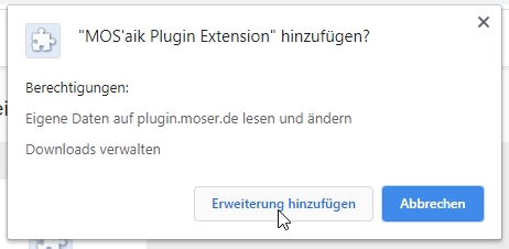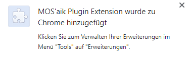 Installieren Sie zusätzlich die Chrome-Erweiterung MOS'aik Plugin Extension aus dem Chrome Webstore. |