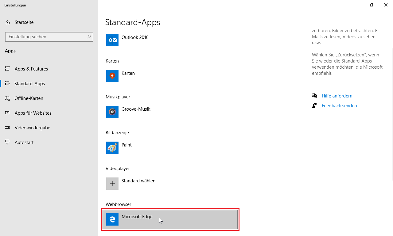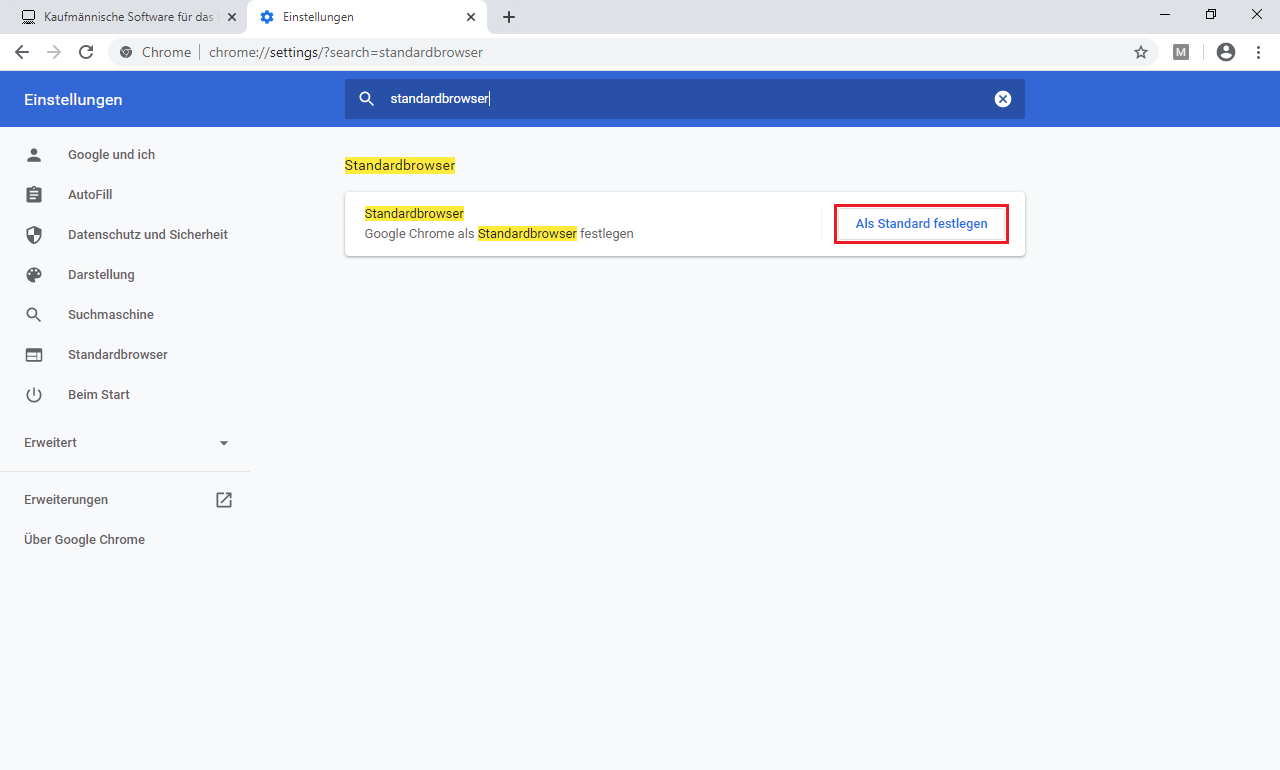 Richten Sie Google Chrome als Standardbrowser ein: |