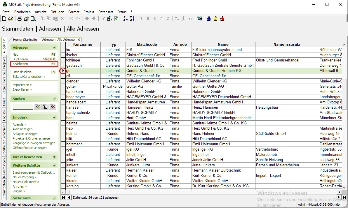 Öffnen Sie das Arbeitsblatt Stammdaten | Adressen | Alle Adressen. |