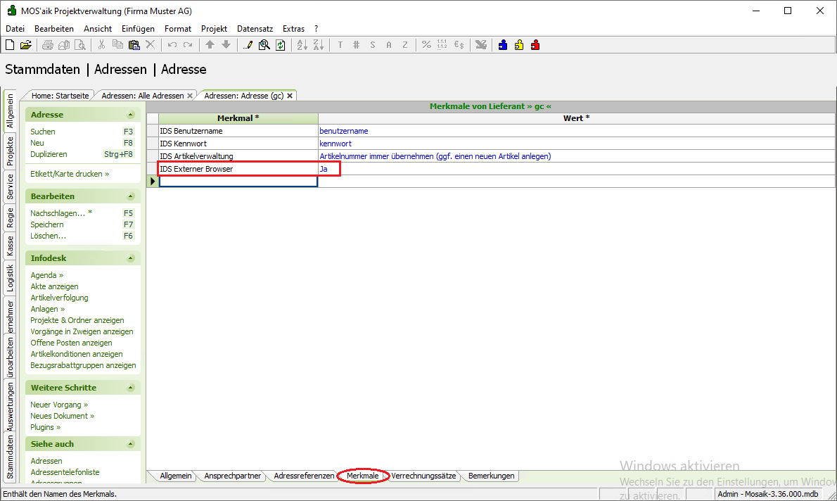 Öffnen Sie für die Adresse die Registerkarte Merkmale. |