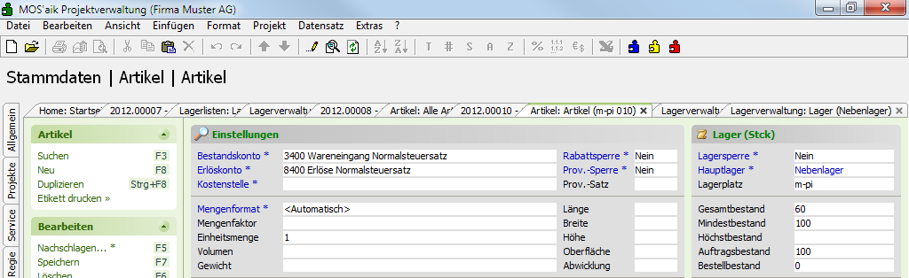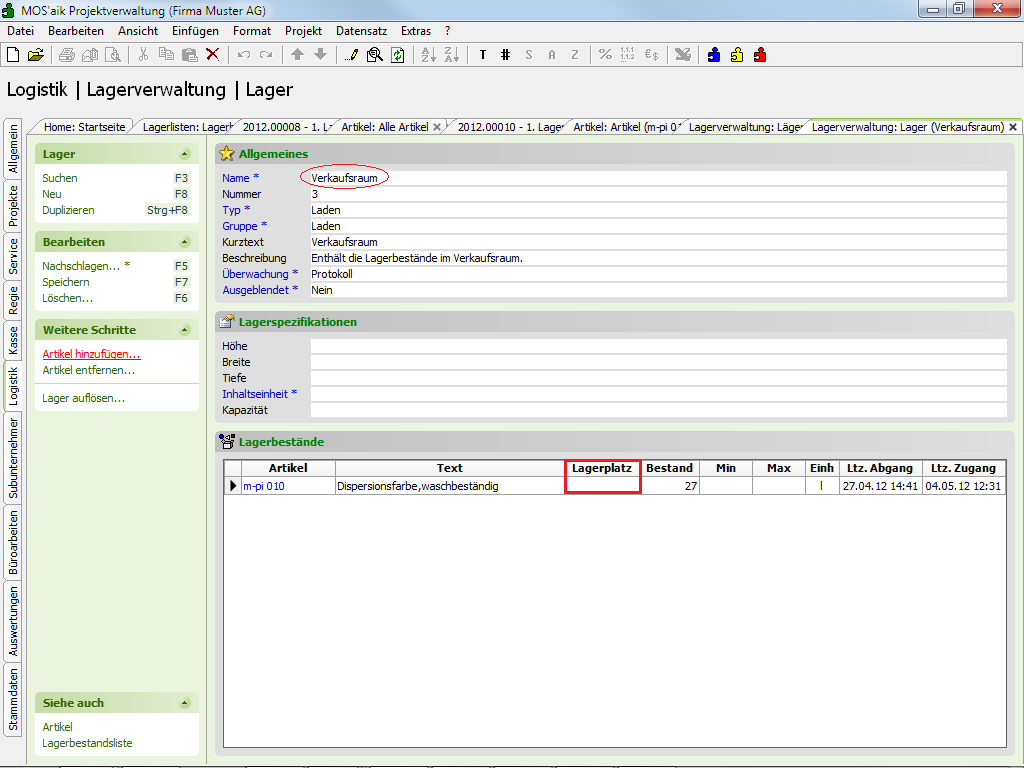 Durch dynamische Verwaltung der Lagerbestände eines Lagers können auch große Datenmengen (>10.000 Bestände in einem Lager) effizient und schnell bearbeitet werden!