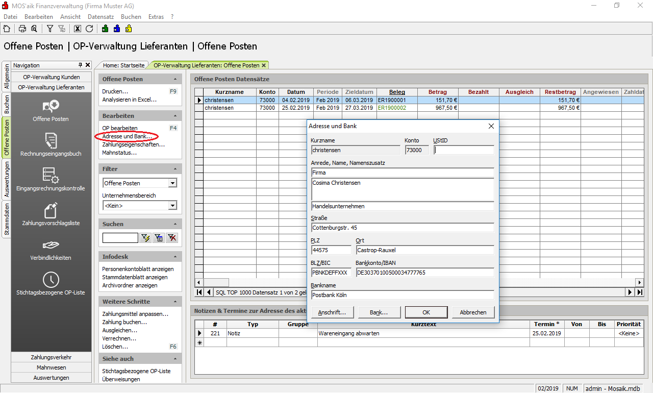 Adresse und Bankverbindung (Funktion |