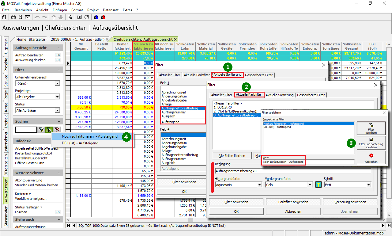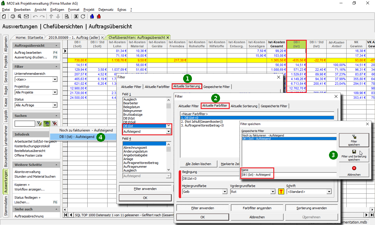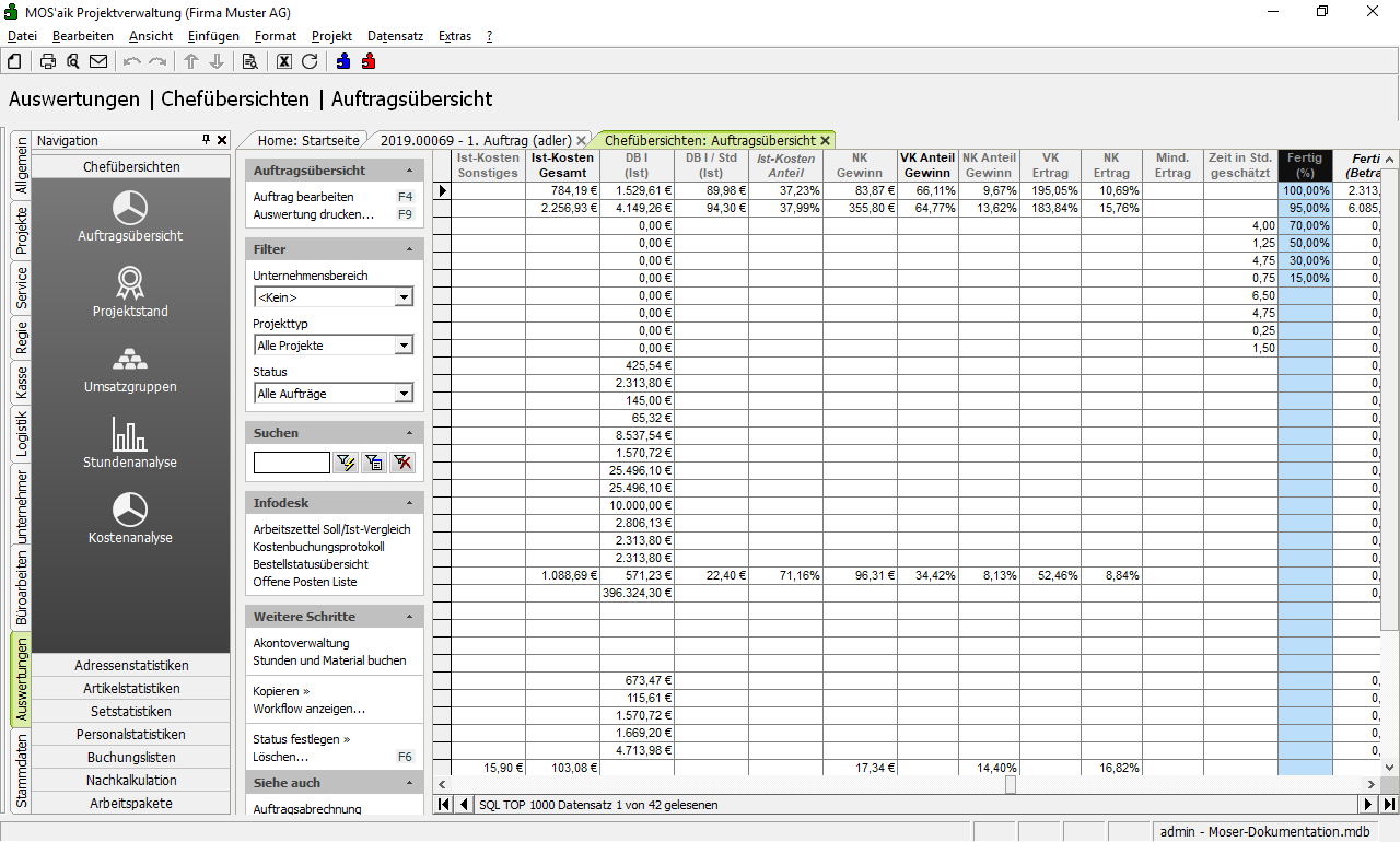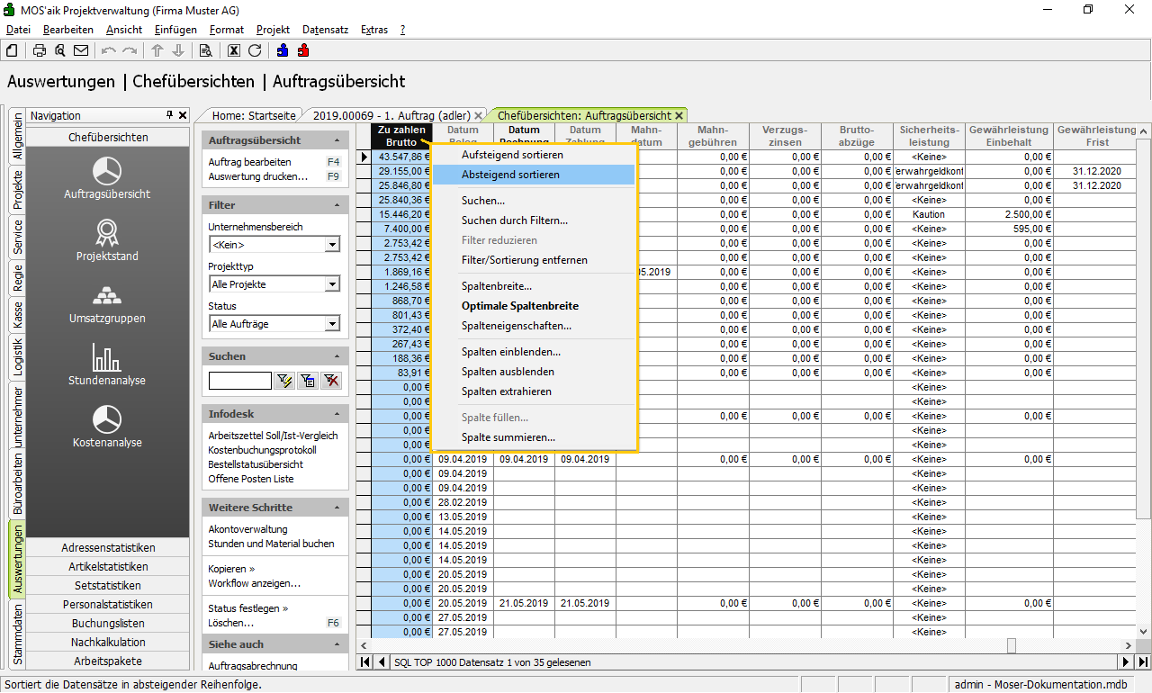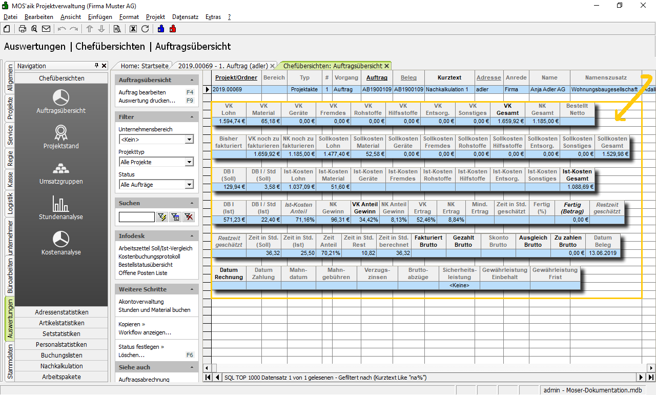 Weitere Details zum Thema finden Sie unter Chefübersichten - Auftragsübersicht.