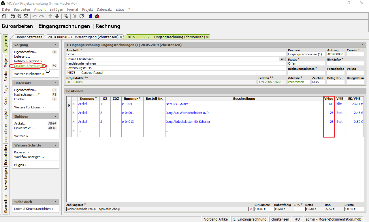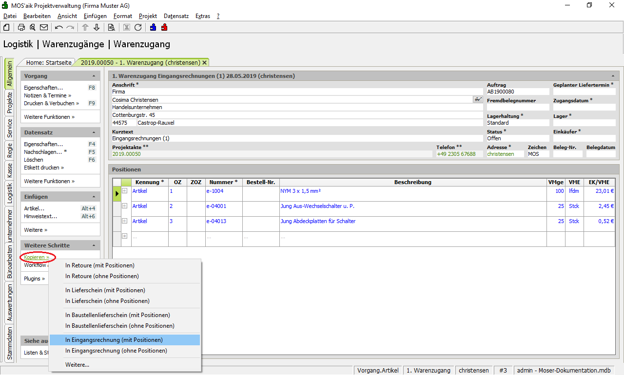 4.6.5.1. Eingangsrechnung buchen (Projektverwaltung)