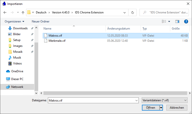 Im Dateiauswahldialog navigieren Sie zum gewählten Speicherort der von Moser erhaltenen Dateien. |