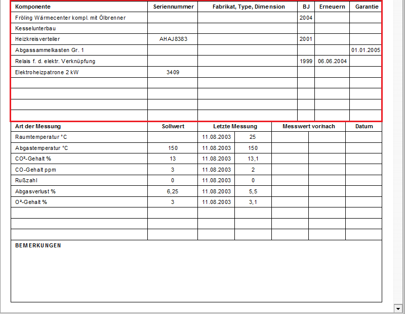 Die Komponenten werden in den Arbeitszettel übernommen. Nach Rückübermittlung des Arbeitszettels zum Unternehmen, werden diese Informationen in die Anlagendaten übernommen. |