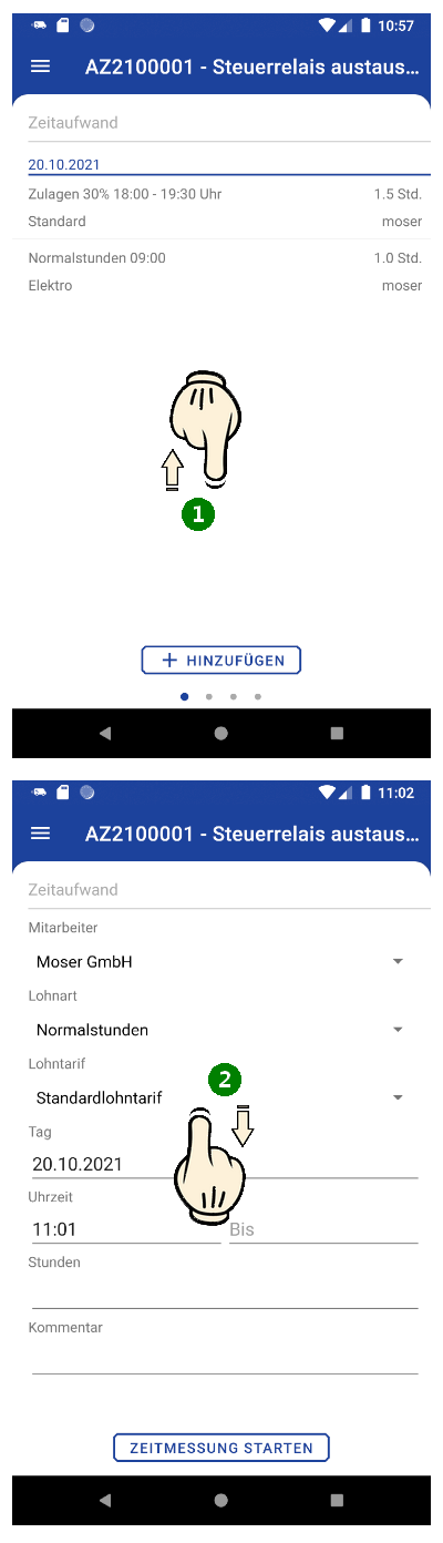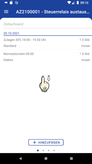 2 Vertikal wischen Grundsätzlich gelangen Sie aus einer Bearbeitungsansicht durch Wischen von unten nach oben (vertikal) in die zugehörigen Detailansichten. |