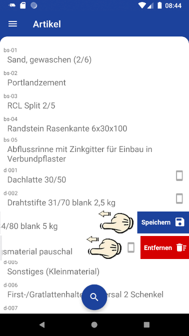 Bei bestehender Internetverbindung stehen Ihnen im Rahmen der App alle im System vorhandenen Adressen, Artikel, sowie Mitarbeiter und für die mobile Verwendung gekennzeichnete Lohnarten, Lohntarife und Auslösungen/Pauschalen, zur Verfügung.