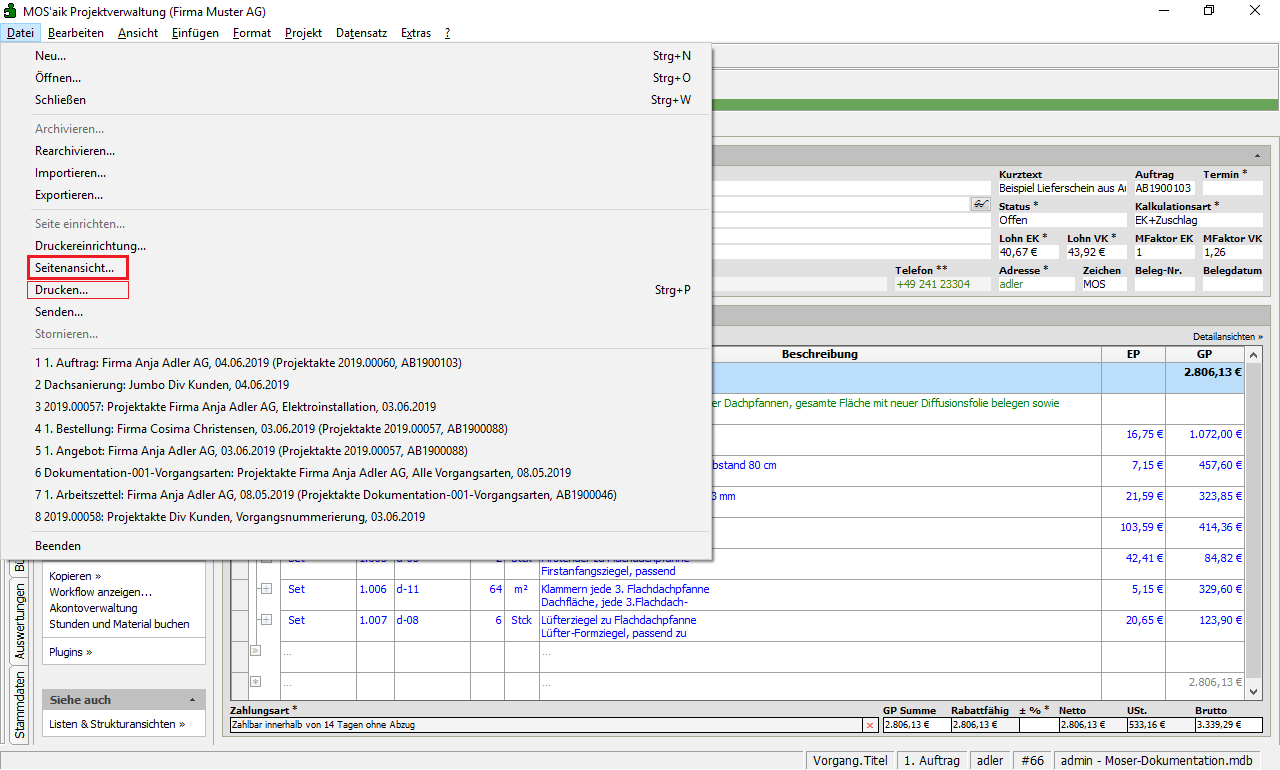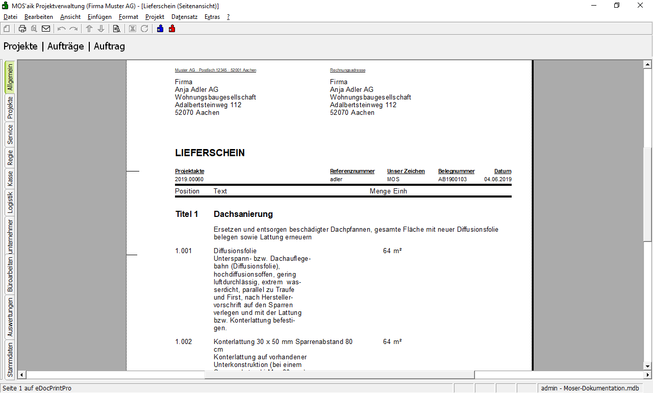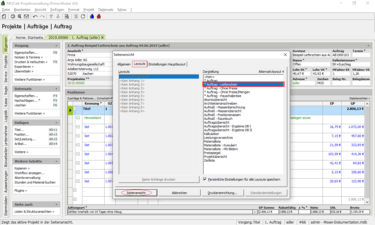 4.8.8.1. Lieferschein zum Auftrag drucken