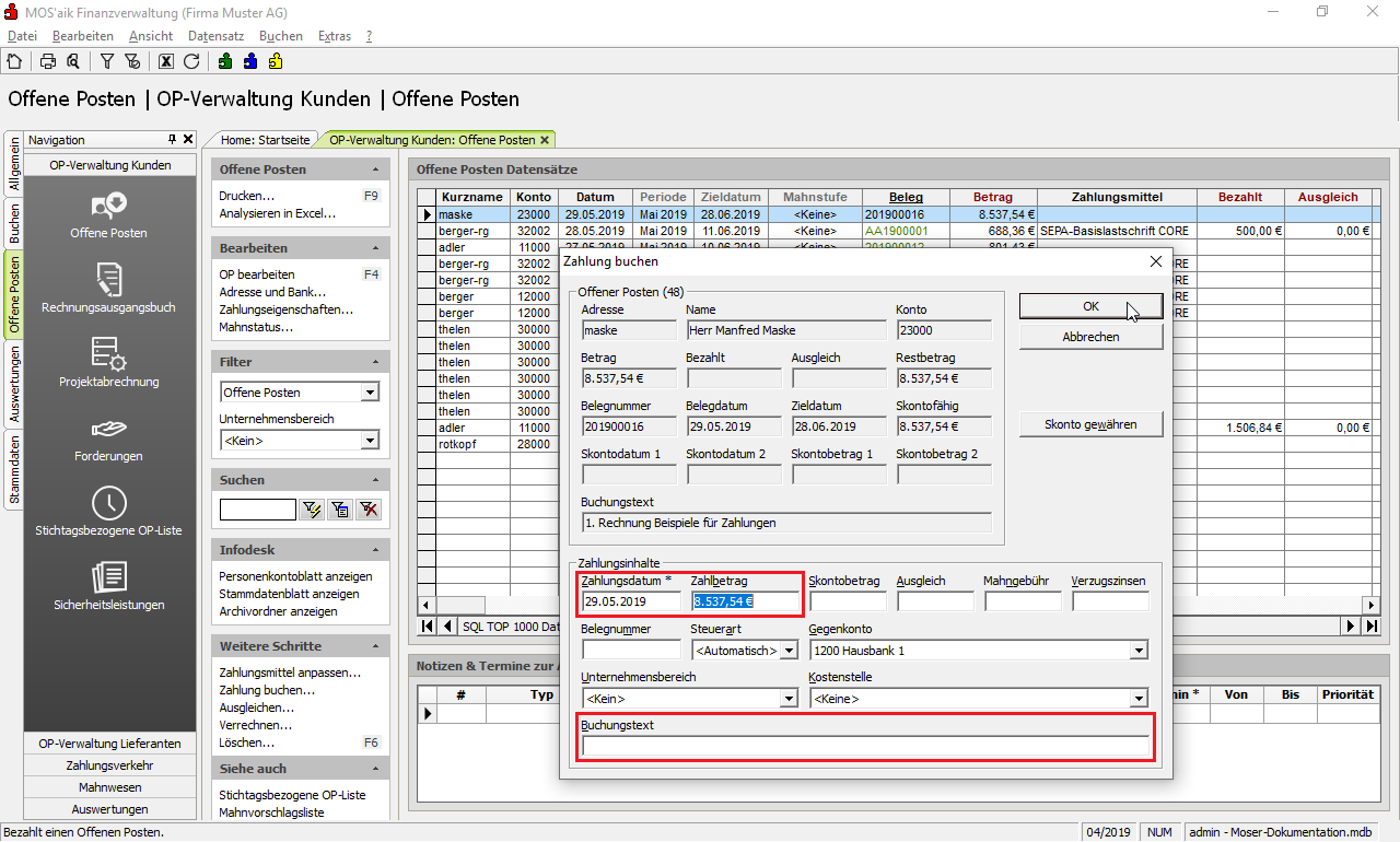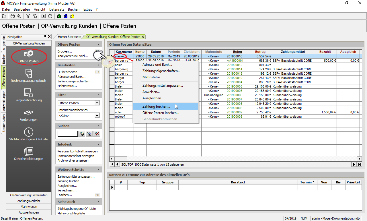 OP-Verwaltung Kunden | Offene Posten und wählen